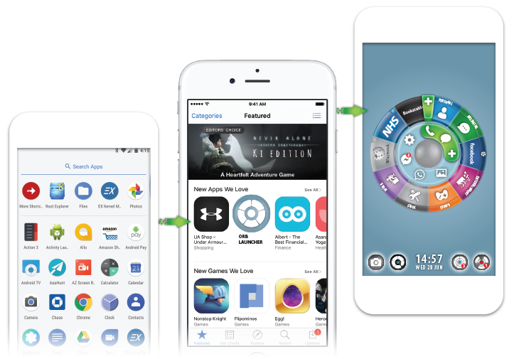 ORB Launcher will be available for a user to download and replace their tired grid layout display, everything on a users phone will be laid out more efficiently and organised to improve a users experience and to reduce the time they spend navigating and searching pages of app icons.